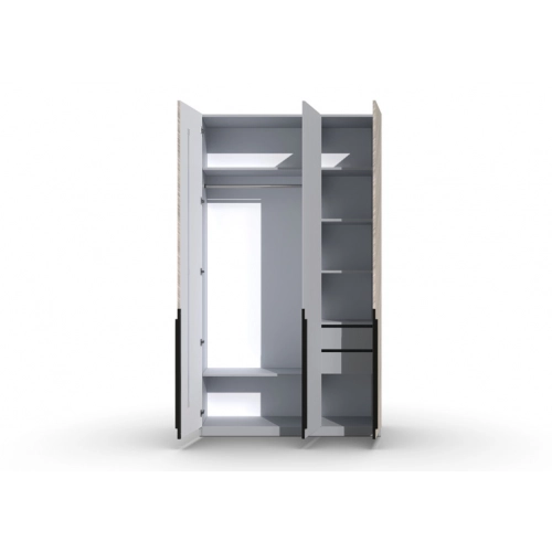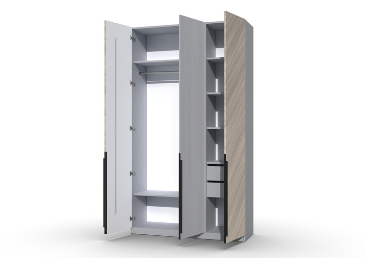 Шкаф 3-х створчатый Шале от фабрики Geona - это элегантное и практичное решение для хранения вещей в вашей спальне или гостиной. Он оснащен выдвижными ящиками и имеет эффектную отделку в диагональном направлении текстуры, что придает ему изысканный и стильный вид.